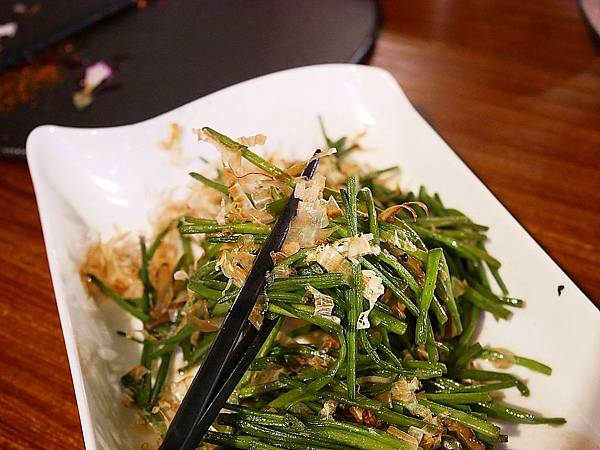 水蓮一上桌,上頭滿滿柴魚片隨著熱氣舞動著,不規則飄移卻形成一種漫妙舞姿