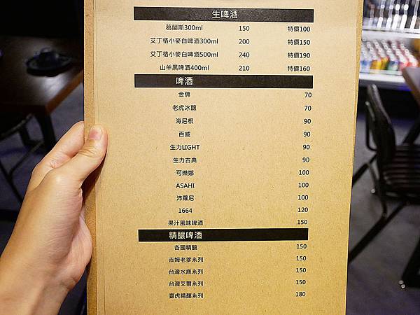 除了生啤之外,還有各式精釀啤酒、洋酒等等