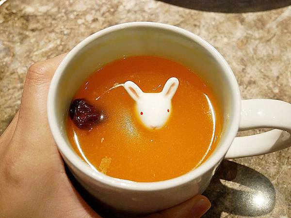 杯中的小兔子超可愛,一開始還想說是什麼東西在杯子裡,湯匙攪很久一直碰壁超搞笑