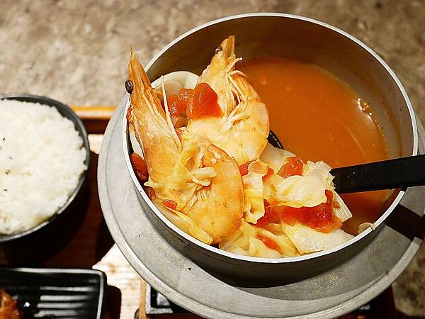 番茄燉漁夫海鮮鍋的湯帶有濃濃番茄味,入口還能品嚐到海鮮的甜味