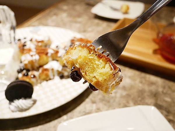 鬆餅的口感偏乾而且不夠紮實,加上淋醬太過油膩,入口比較厚重不清爽