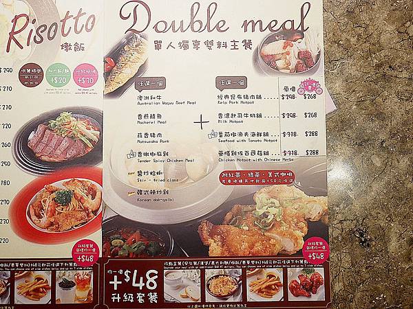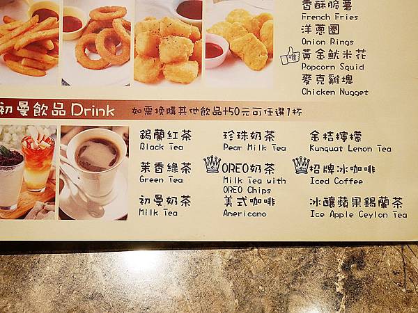 只要點單人獨享雙料主餐就會附上一杯飲料,附餐飲品+$50可選擇更多升級版飲料