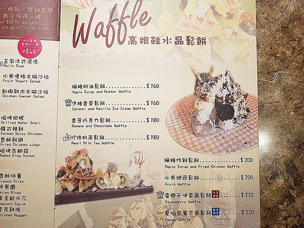 餐點的部分最吸睛的不是主餐,而是華麗的高跟鞋鬆餅,快點把遺失玻璃鞋的灰姑娘找來!!
