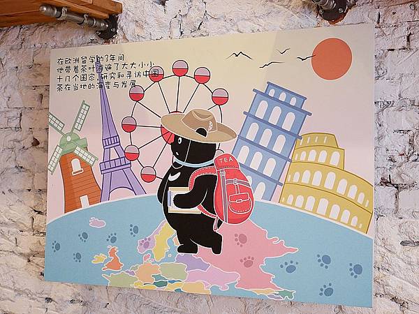 牆面上還掛著小熊到歐洲探訪的奇妙茶遇記