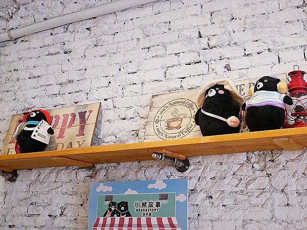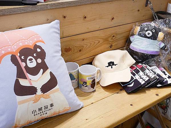 櫃台的旁邊還有各種小熊的周邊商品,包含玩偶、帽子、抱枕等等
