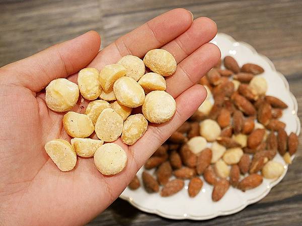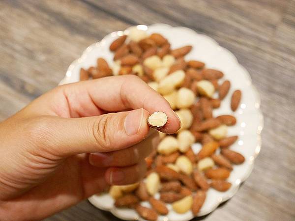 果仁咬開之後依舊是乳白色,表示沒有過度烘烤或是油炸,營養依舊保留