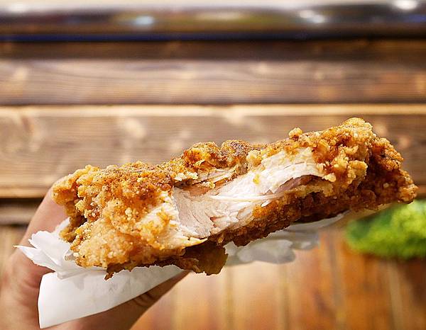 雞肉滿厚實,咬下有肉汁,入口完全不會乾柴,是好吃夠味的炸雞排