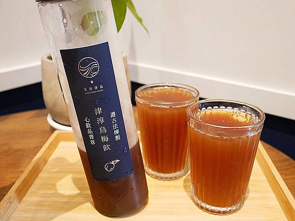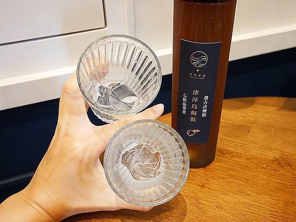 天淳津品的烏梅飲在內用時會附上裝了冰塊的杯子,服務滿貼心