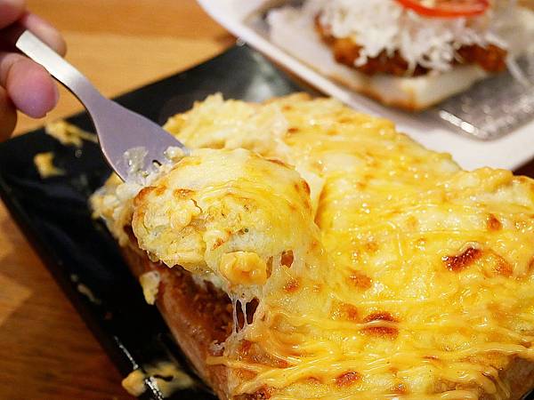 遇熱融化的起司均勻附著在豬排之上,讓豬排的香氣和濕潤度大增