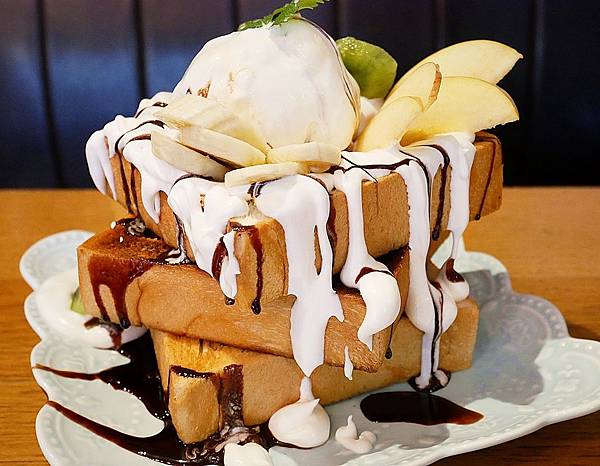 早午餐提供的餐點種類還不少,除了基本的三明治系列之外,還有山形大厚片