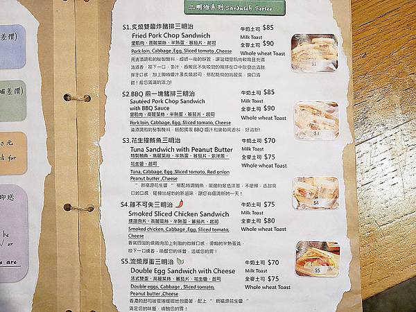 小酒館早午餐的三明治系列可以選擇要搭配牛奶吐司還是全麥吐司,吐司的部分選用跟洪瑞珍同一家的