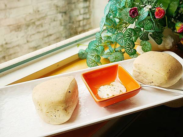 這款麵包看起來長得很像饅頭,上桌時是剛烤出來,所以摸起來還熱熱的
