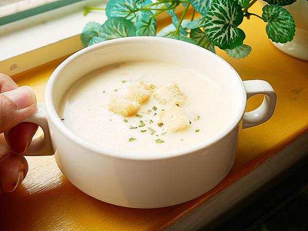 上頭的麵包丁不會太乾硬,特別在吸附濃湯後口感更棒