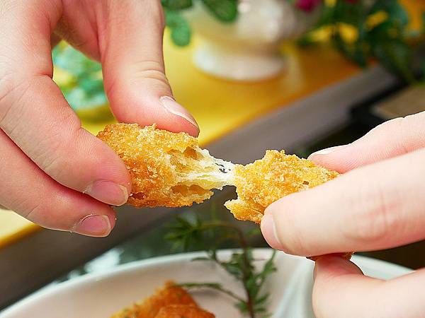 吃起來像乳酪條的外層,咬下後是Q彈口感和濃郁地瓜香氣,有點像在吃酥脆感升級的地瓜球