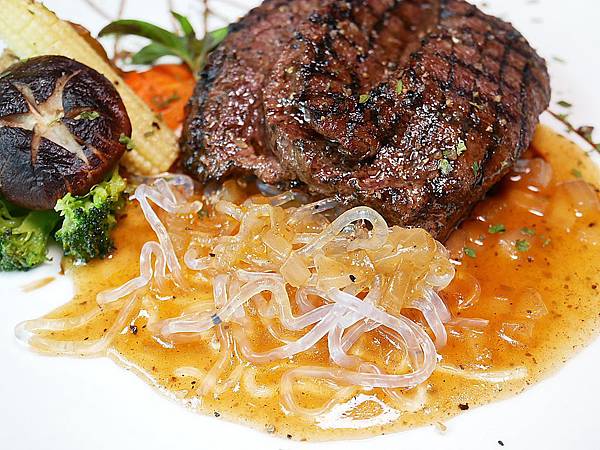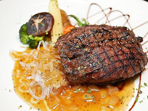 醬汁不是一般濃稠的蘑菇或黑胡椒醬,而是自己熬煮的蘑菇醬汁,風味清爽且沒負擔