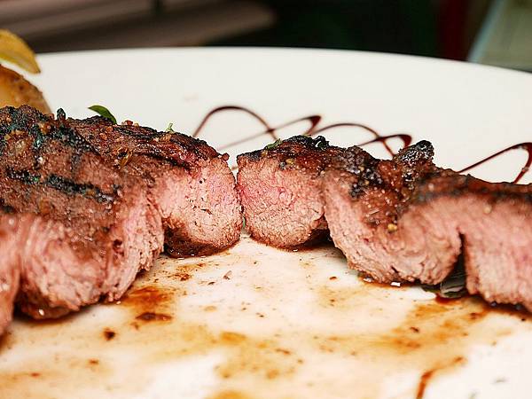 牛排切開後沾一點醬汁享用會更增加濕潤,也更加提味