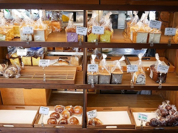 櫃檯旁就擺放一櫃當天現做的各色土司、麵包,如果有興趣的人可以自行挑選,有很多風味都是外面不曾看到過的,靜香和好姊妹去六福村前,就帶一條吐司去當點心,光是選擇要哪一個口味就耗掉不少時間