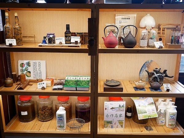 店家在櫃檯上還有附近擺放許多小農作物的製品,包含花草茶包、米、清潔劑等等,店員說這是別人寄放在這邊販售的