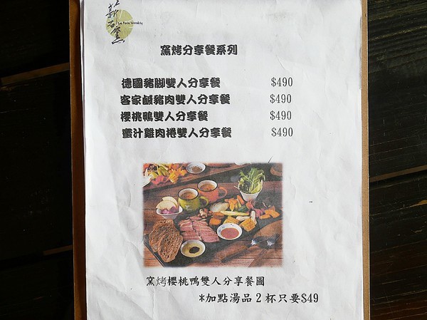 因為我們人多,兩個5吋披薩根本無法吃飽,所以又點了一份雙人分享餐,這份的食材也都是用窯烤爐烹煮的,所以風味跟一般外面餐廳吃到得很不同