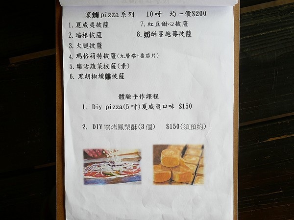 因為我們中午就到,所以點完餐很快就可以開始DIY窯烤體驗,靜香負責掌鏡,讓男友跟好姊妹一人做一個,比較可惜的是,店家手做披薩的部分只有夏威夷口味可以挑選,5吋真的不大吃不過癮,如果想要吃不同口味,或是想吃大一點的,那就讓店家幫你完成吧,薪石窯窯烤PIZZA10吋只要$200,我們愛玩選擇自己做,男友和好姊妹開做之前就先互相嗆聲,要比看看誰的比較厲害