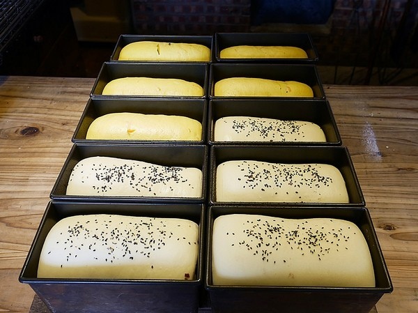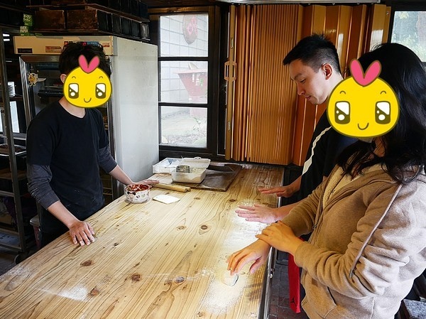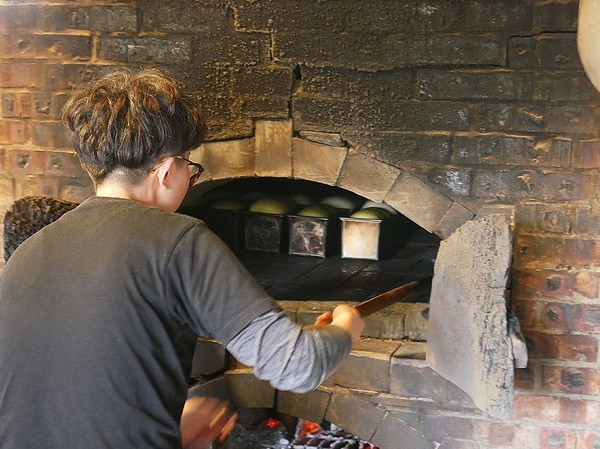 店家的所有麵包都是自己揉麵、自己發酵、自己窯烤製作,我們在做披薩時,就看到其他員工在內部努力的做著麵包,還有已經發酵的麵包放在旁邊準備入窯,看這個SIZE和形狀應該是我們熟悉也常吃的吐司,頭一次看到土司製作