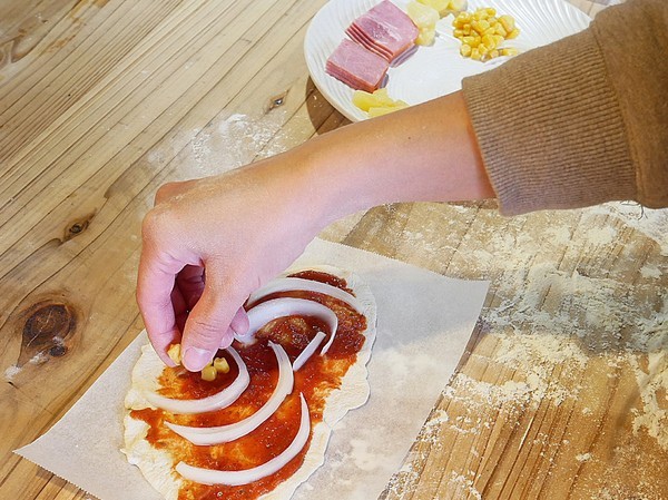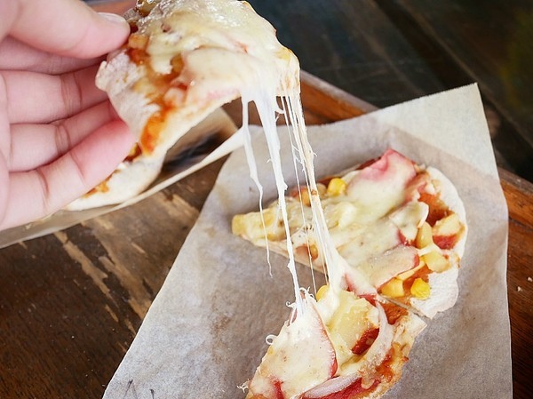 披薩記得趁熱吃,才能像我們這樣拉出超美的絲~雖然看起來配料不多,但我們鋪得很均勻,所以每一塊都能吃到各種食材,不輸給外面的店家,其中鳳梨真的很提味,酸香又清爽,將披薩的風味大大提升,其中牽絲無極限的起司份量剛好,有牽絲效果卻不過膩,整體搭配起來是耐吃的,而且餅皮不會太厚,烤完微酥不乾硬,Q脆口感深得我心,我們三個人一致通過,覺得自己做的披薩很美味,看來他們兩個人多了一項做披薩的技能