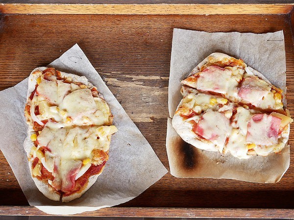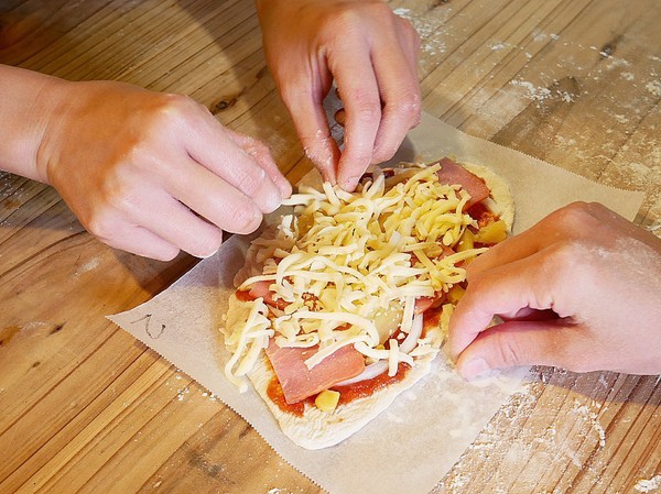 因為披薩只有5吋,所以僅切成四片,雖然size不大 但靜香覺得味道最重要,而且自己動手做,先加10分