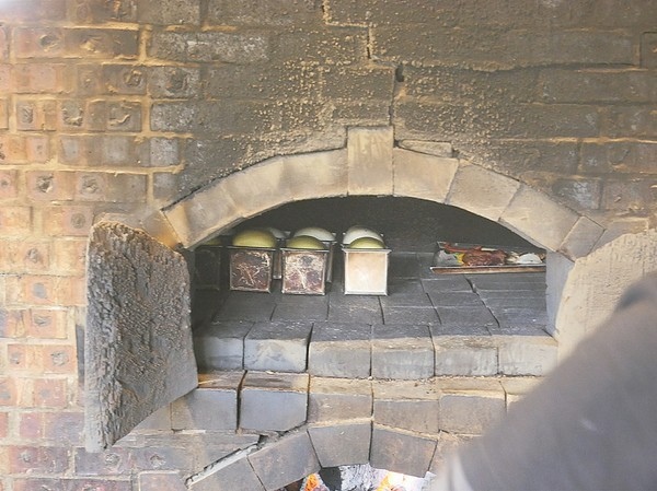 等待店員幫我們放披薩時,拍到爐內的麵包因為高溫已經膨脹,看起來好可愛,旁邊那一盤則是我們點的窯烤分享餐,店家的餐點應該都是以這個窯烤爐在料理,真的很特別