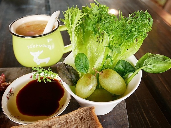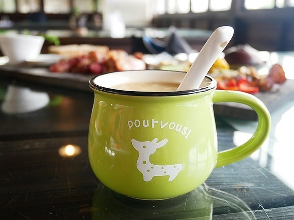 目前點雙人分享餐,只要加$49就會多兩碗湯品非常划算,不知道每天提供的湯品是否相同,我們當天享用的是玉米濃湯,因為我們坐在靠近櫃檯的位置,所以濃湯在煮的時候飄來陣陣香氣,肚子都餓了,用可愛的小馬克杯盛裝,雖然不是非常大碗但裝得很滿,重點是香氣四溢