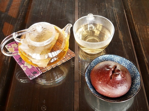 店家的茉莉花茶會附上每日的小點心,當天附的是巧克力麵包,這樣一份午茶有吃有喝,滿適合跟姊妹悠閒午茶時光,而且茶可以回沖,如果留半壺二沖,風味依舊棒