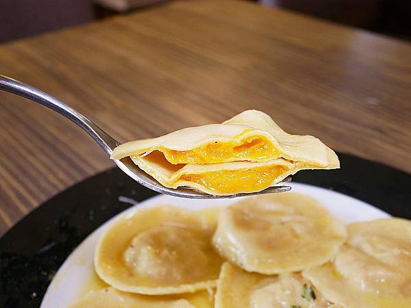 看到黃澄澄的餃皮還以為南瓜指的是餃皮的部分,沒想到竟然是內餡用南瓜泥填滿![]()