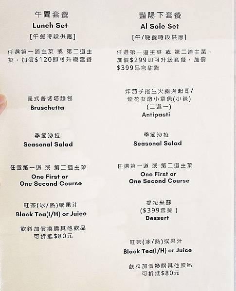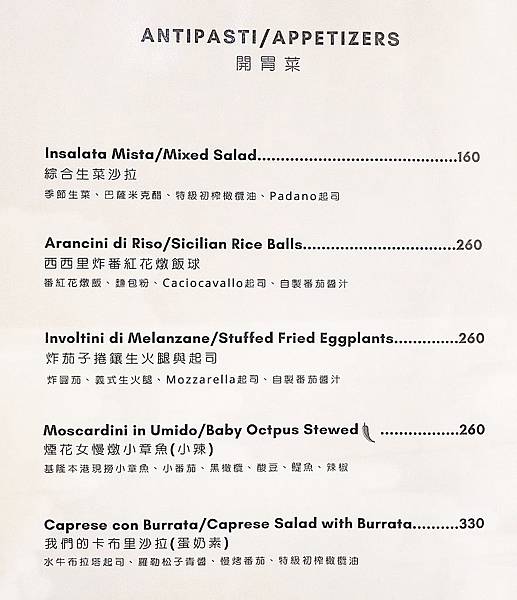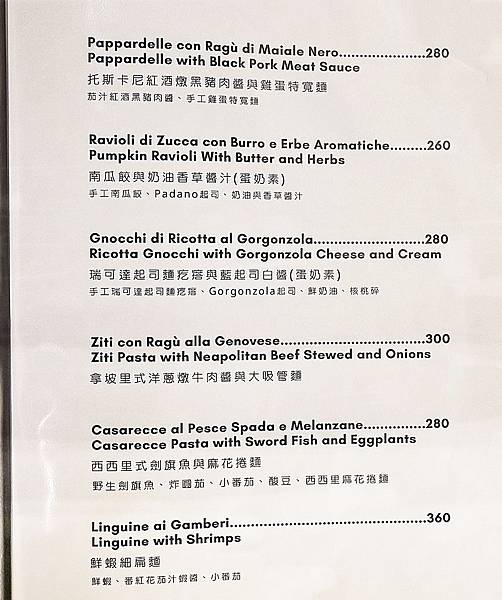 因為老闆是遠赴義大利學習,根據店家的菜單來看,義大利人吃飯分很多層次