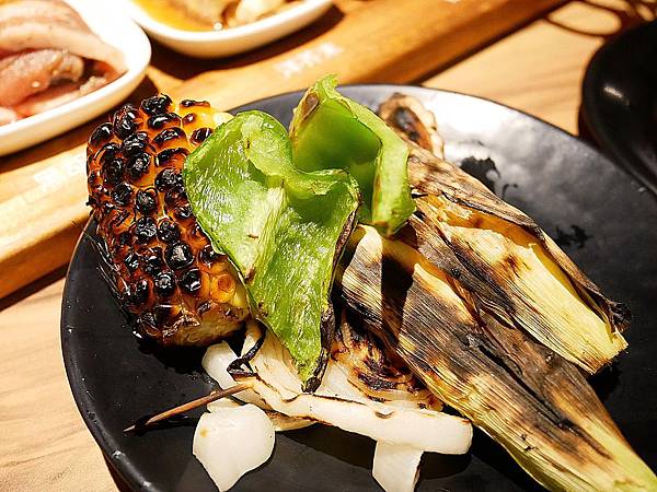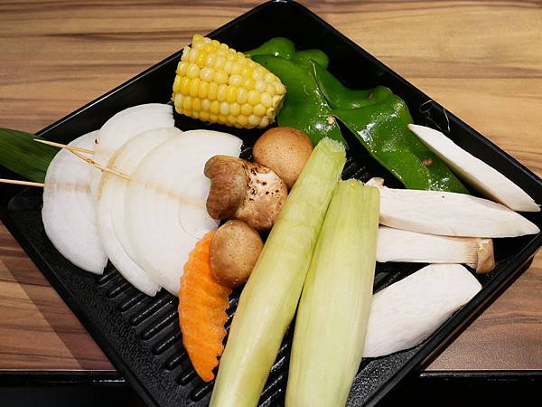 裡面的洋蔥烤完很好吃,杏鮑菇也很棒,玉米筍就比較不夠嫩