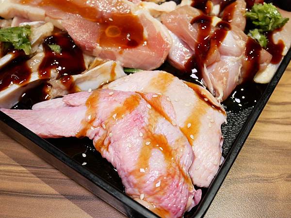 這盤裡面一共有四種部位,包含雞翅、雞軟骨、雞腿肉等等
