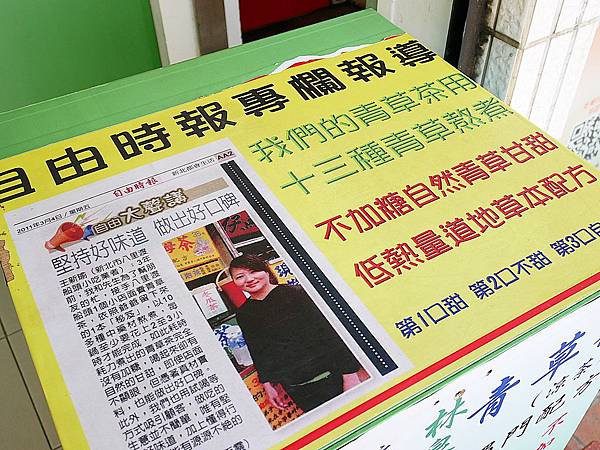 八里的"林泉青草茶"是用爺爺留下的祖傳秘方提煉青草而成,入口挺溫順