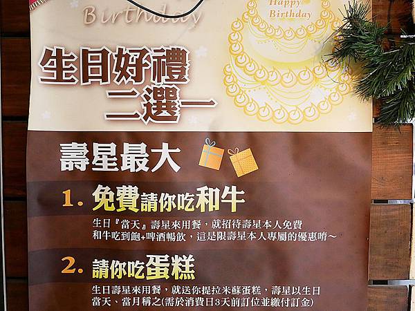 生日當月用餐也有不同優惠,消費前三天訂位並付訂金,就送一個提拉米蘇