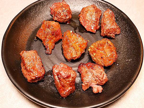 骰子牛不小塊,咬下滿多汁,而且相當有咀嚼感,口感挺不錯,我覺得值得點