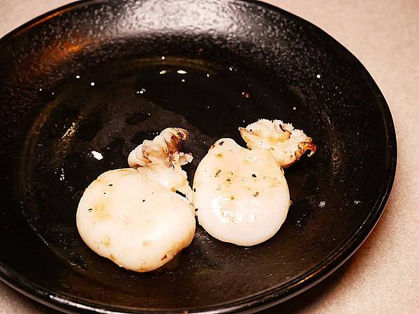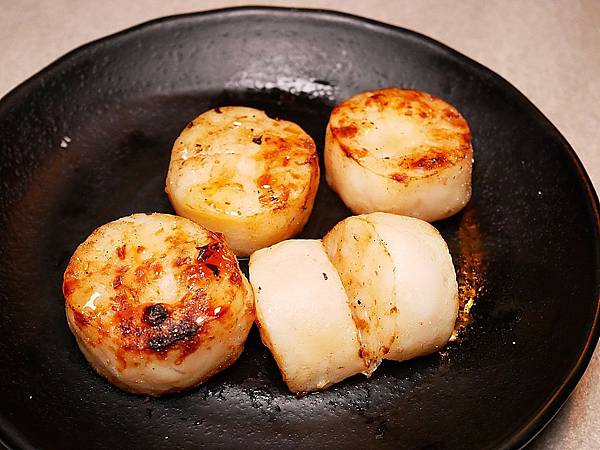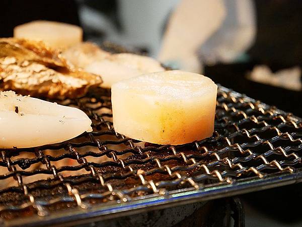 店員有特別告訴我們,干貝要烤到兩面都上色才比較剛好,店員甚至用夾子秒切開,帥氣十足