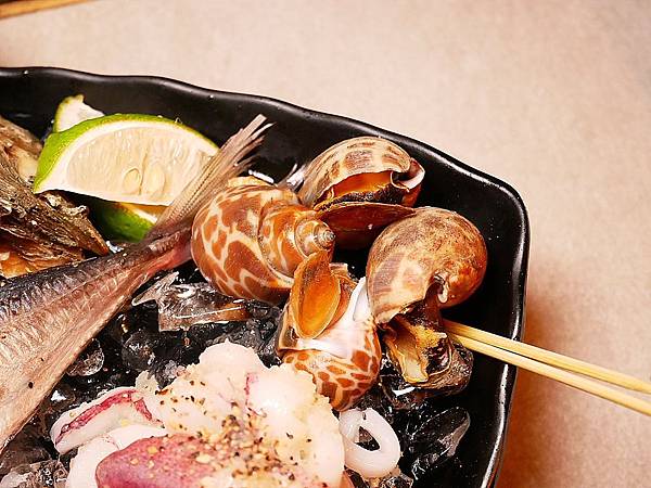 螺肉相當Q脆又沒有腥味,裡面的內臟苦味不重但明顯,比較不愛