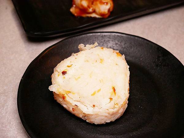 裡面包入一些鮭魚塊,所以除了烤米飯的香氣之外還有鮭魚香