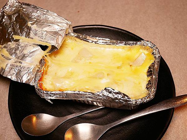 用鋁箔包覆住,打開後熱氣奔騰,最上層是厚厚一層起司,而且是超牽絲的那種