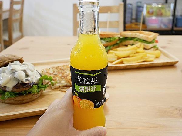 柳橙汁是罐裝的美粒果,喝起來不會太甜,果汁香氣淡淡的