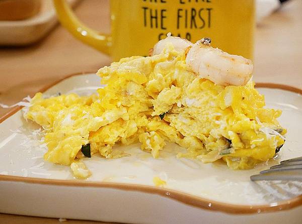 炒蛋止有蛋香還有淡淡奶香味很好吃,上頭的蝦子是鮮蝦而非蝦仁,口感脆口彈牙而且鮮味十足好加分。