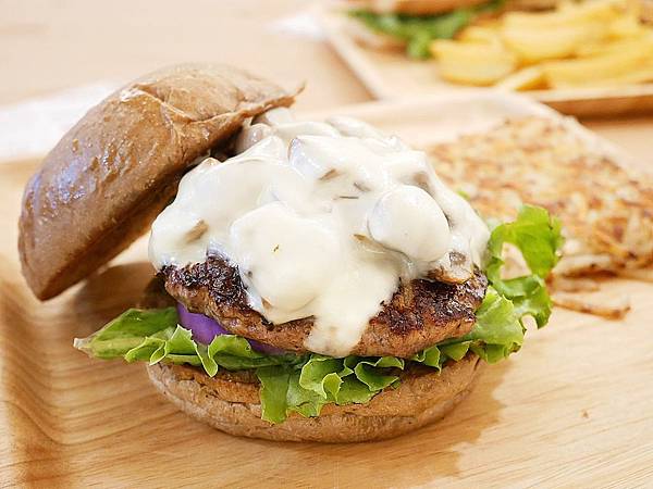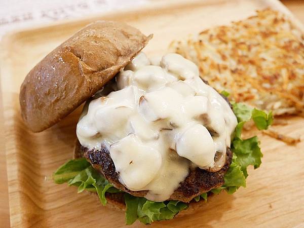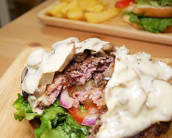漢堡皮內側烤得酥香,但外層依舊保持鬆軟口感,中間加入生菜、番茄等等增加清爽度,搭配上蘑菇跟起司一起的口感真不錯