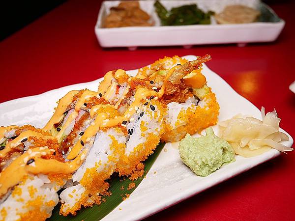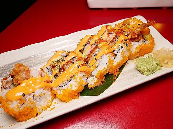 入口帶點辣相當跳脫預設值,裡面有炸蝦、酪梨泥,外頭還有蝦卵所以口感和風味挺有層次