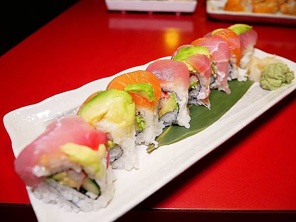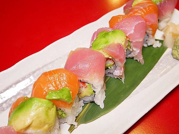 不僅配色好看,而且每個壽司卷上頭都有一塊生魚片和酪梨泥