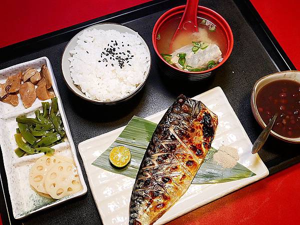 定食都會附上三道小菜、味噌湯、紅豆湯、一碗白飯和主食