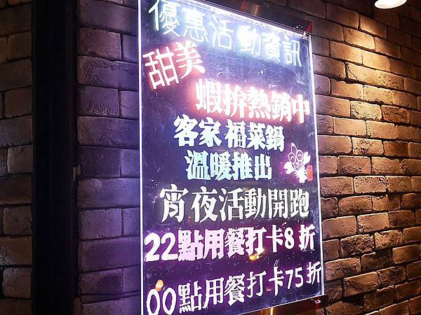 還沒進到店內就看到亮晃晃的霓虹看版,越晚來用餐越划算,分明是慫恿大家吃消夜
