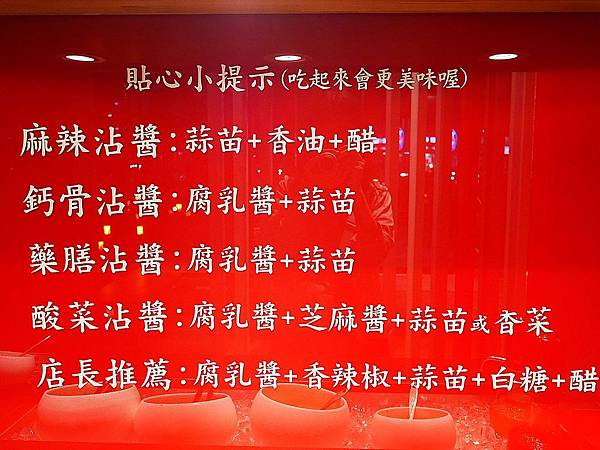 店家貼心的幫大家試出醬和湯的完美組合,但我個人吃鍋不會特別去沾醬,所以沒試