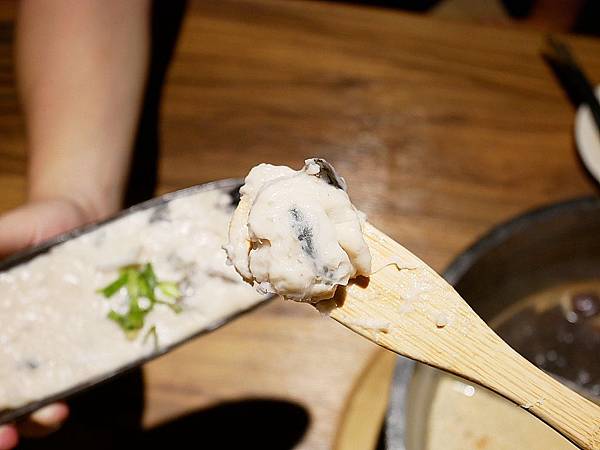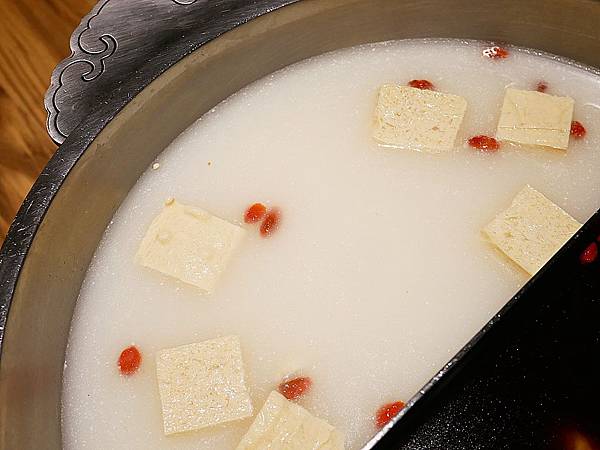 膠原鈣骨是白湯,裡面的鍋底包含凍豆腐和豬大骨